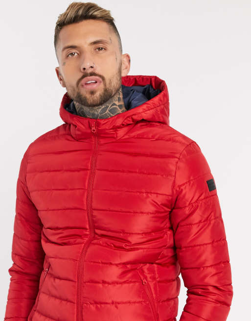 Jack and Jones Originals hooded puffer jacket in red ShopStyle