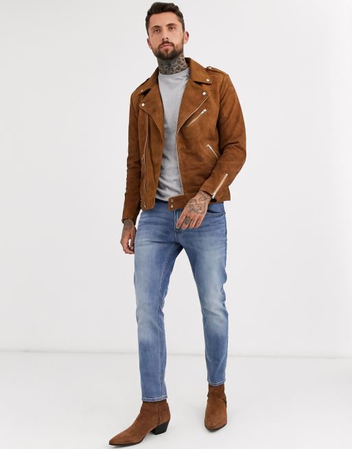 Jacket asos clearance, ASOS DESIGN washed faux leather biker jacket in brown ASOS clearance