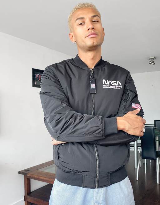 Pull Bear Nasa padded bomber jacket in black ASOS