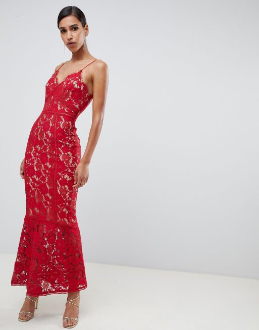 Jarlo cami strap allover lace maxi dress in red ASOS