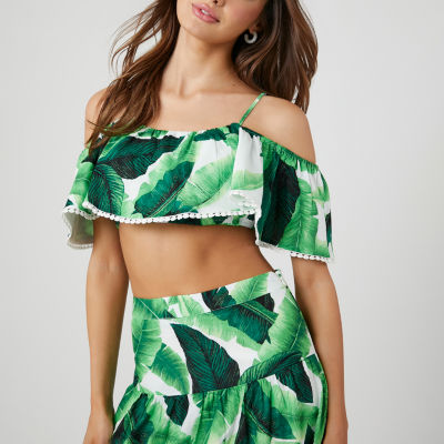 Forever 21 Juniors Palm Print Womens Square Neck Short Sleeve