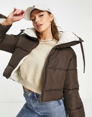 Jdy Cropped Contrast Padded Jacket In Chocolate black ModeSens