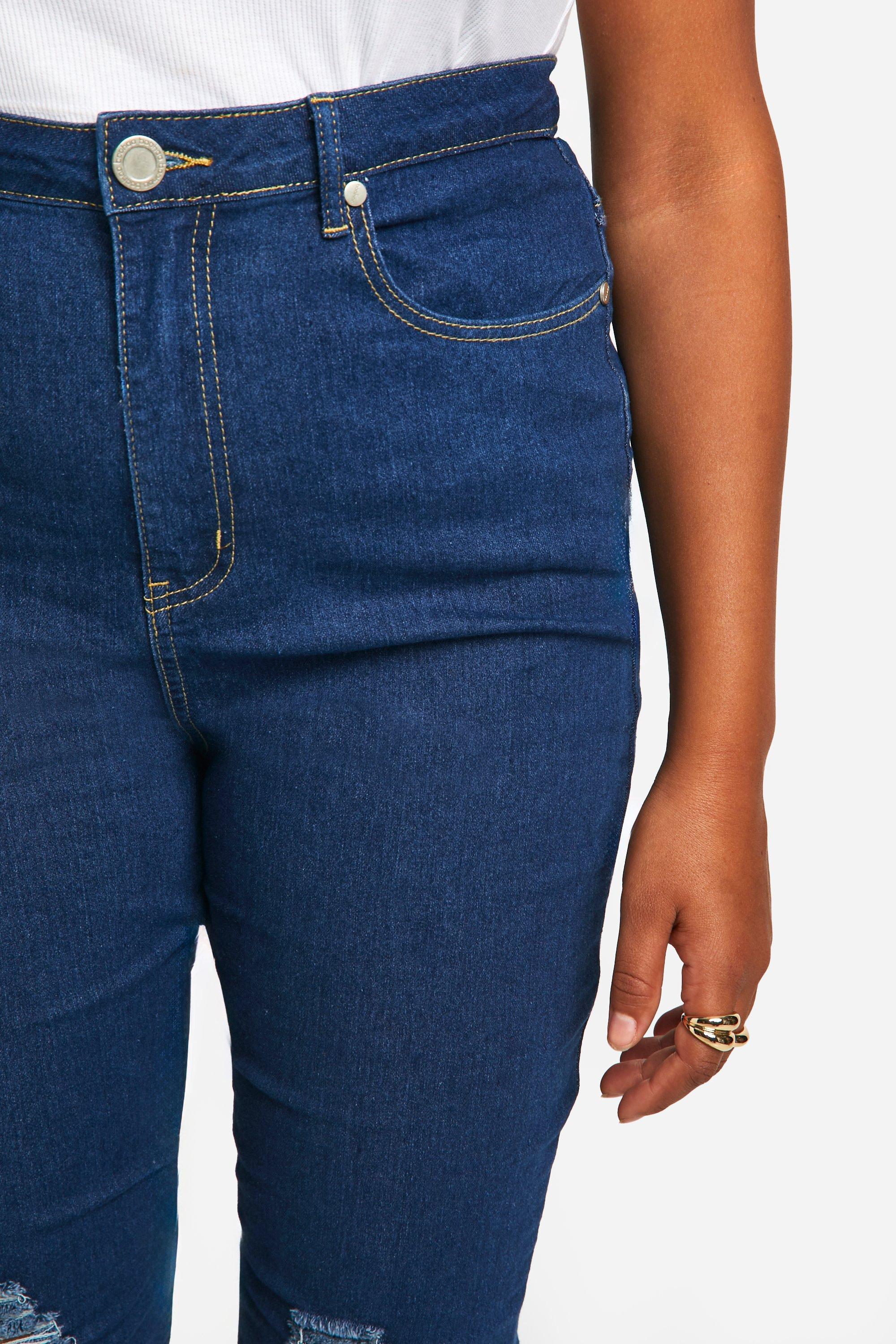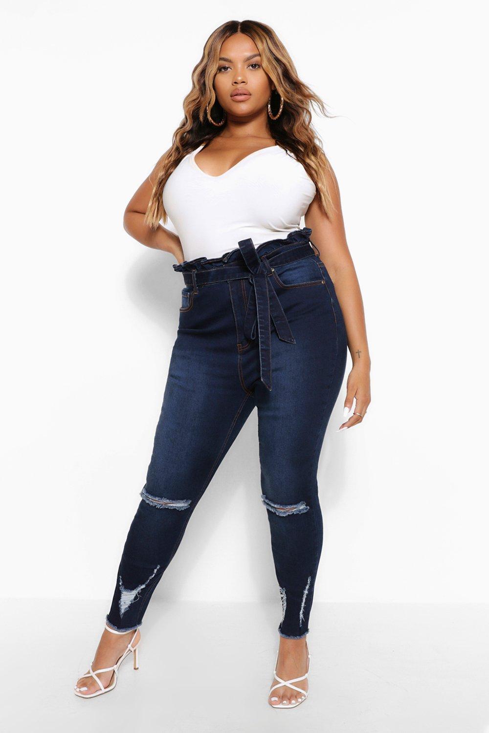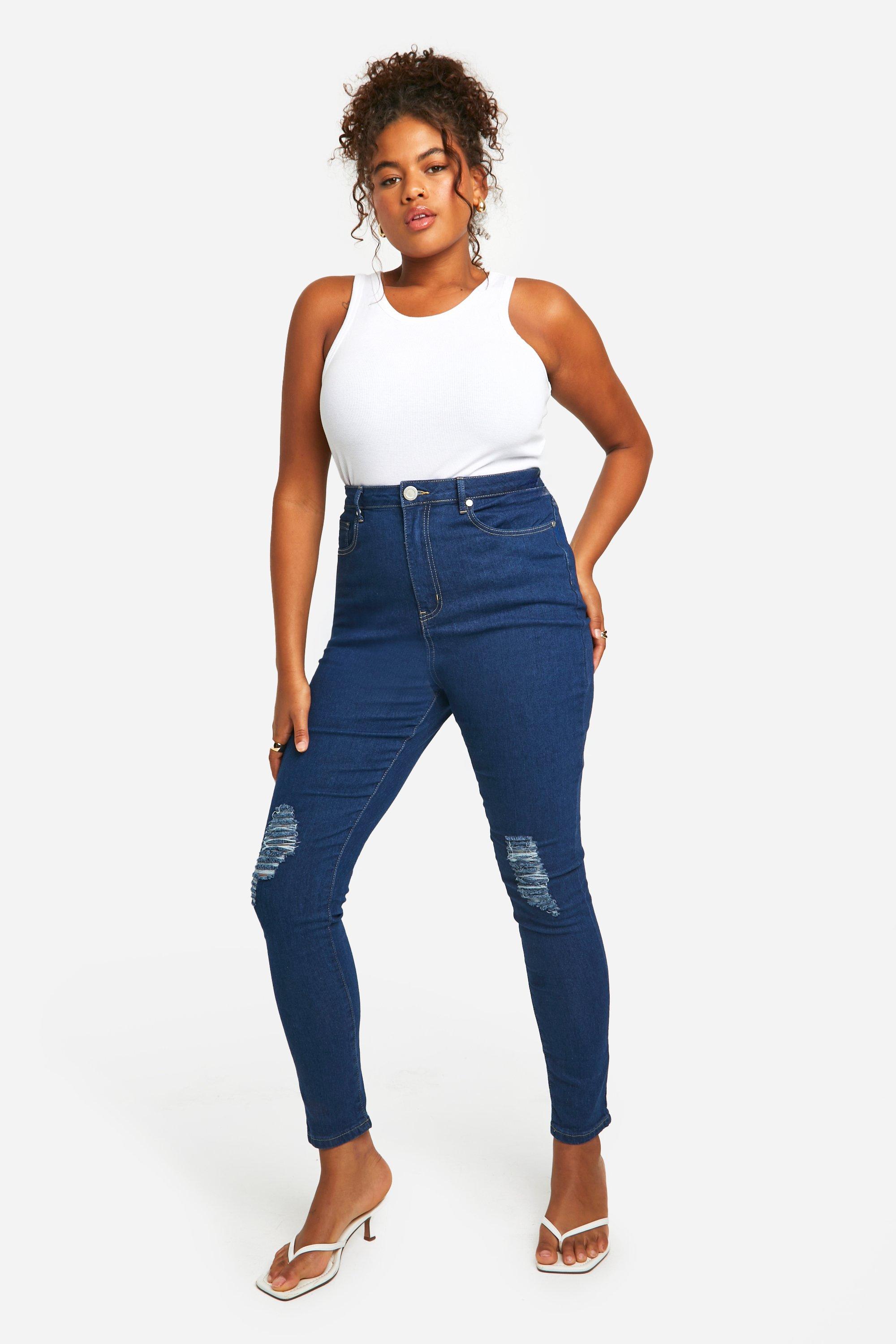 Grande taille Jean skinny taille haute ceinture et d chirures
