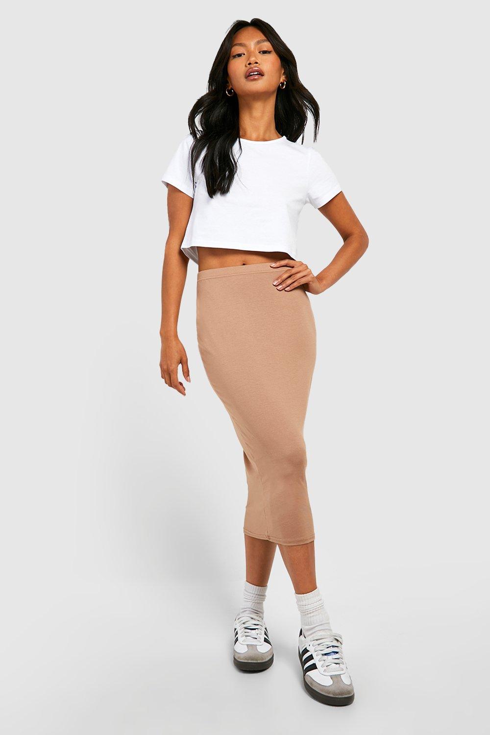 Basics High Waisted Jersey Knit Midi Skirt boohoo