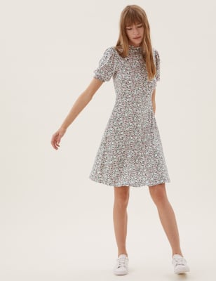 Jersey Floral Knee Length Skater Dress M S Collection M S