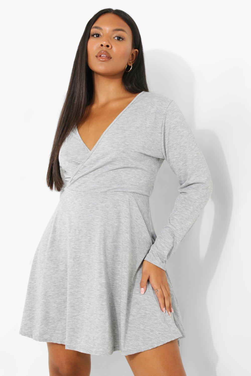Women s Plus Jersey Wrap Skater Dress Boohoo UK