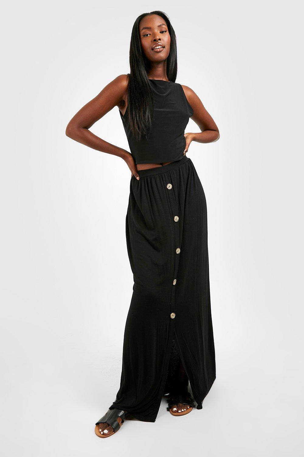 Women s Button Front Jersey Maxi Skirt Boohoo UK