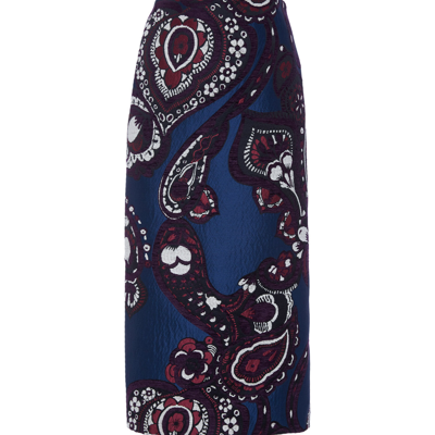 La Doublej Paisley embroidered Jacquard Pencil Skirt In Multi