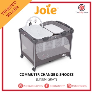 Baby Cots Playard Joie Commuter Change Snooze Linen Gray