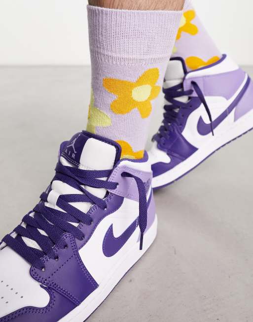 Air Jordan 1 Mid trainers in sky purple and white ASOS
