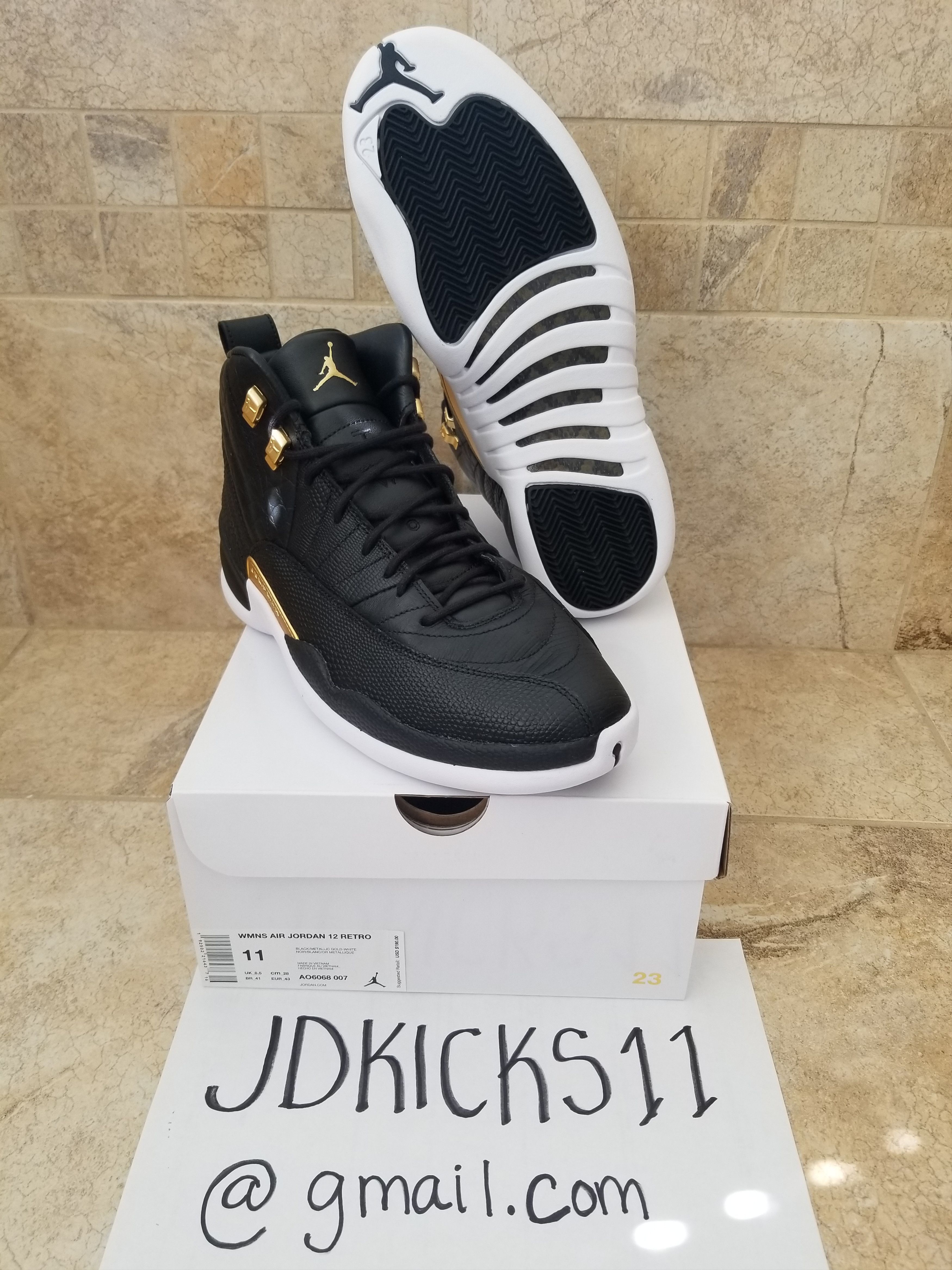 Jordan 12 Retro Black Metallic Gold White Women s AO6068 007 US