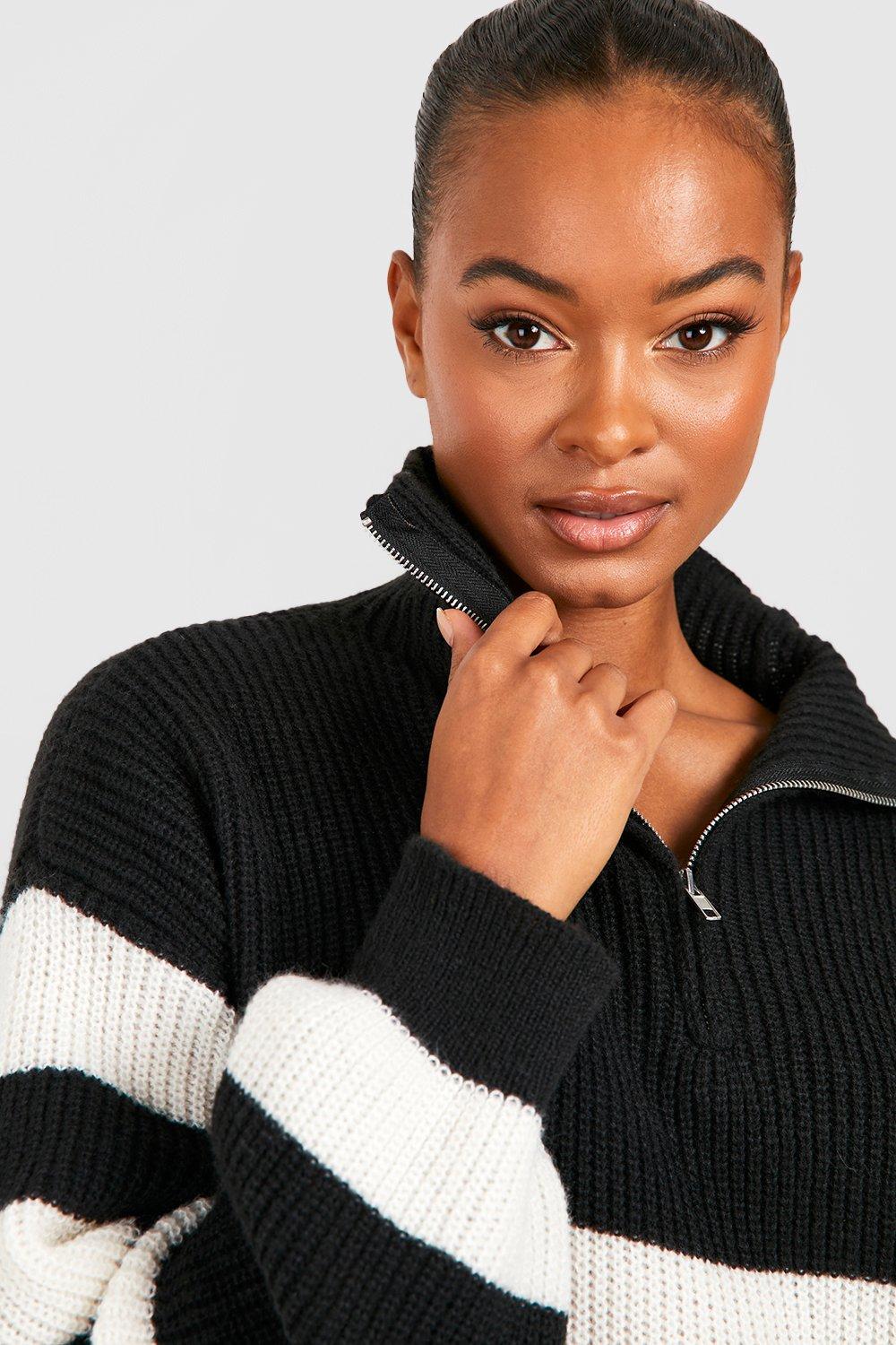 Jumper with a zip clearance, Women s Tall Half Zip Striped Jumper Boohoo UK clearance