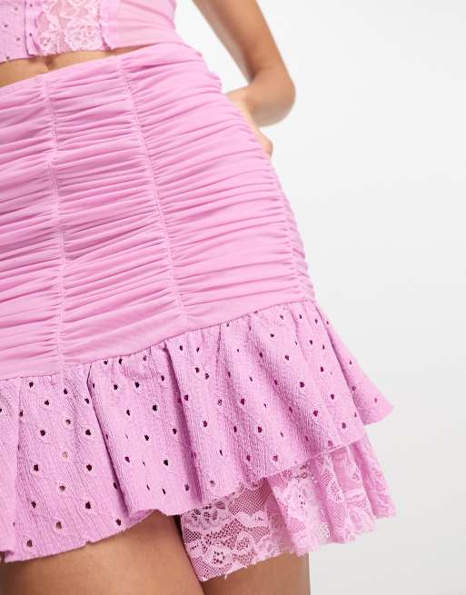 ASOS DESIGN Mini jupe d ensemble en tissu fronc textur et vari avec ourlet volant Lilas