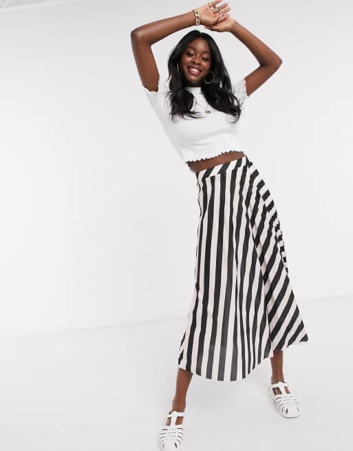 ASOS DESIGN Jupe mi longue pliss e rayures Noir et blanc