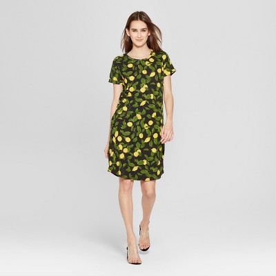Women s Lemon Print Short Sleeve T Shirt Dress K by Kersh Black