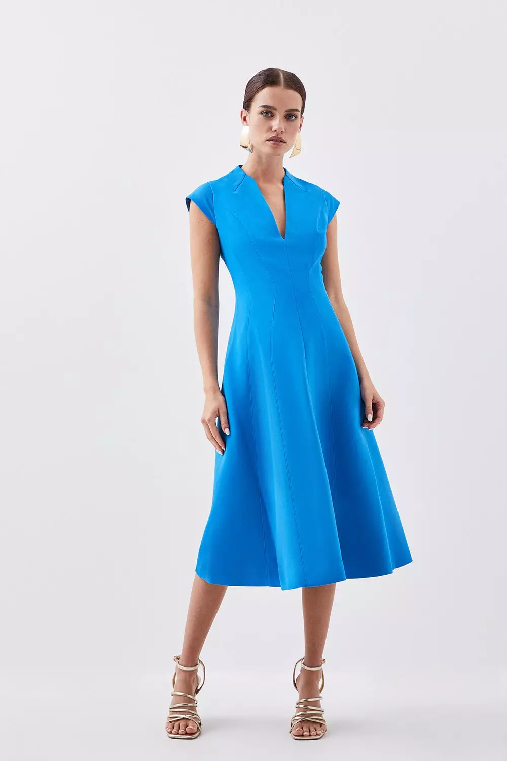 Petite Tailored Seam Detail High Neck Full Skirt Midi Dress Karen Millen