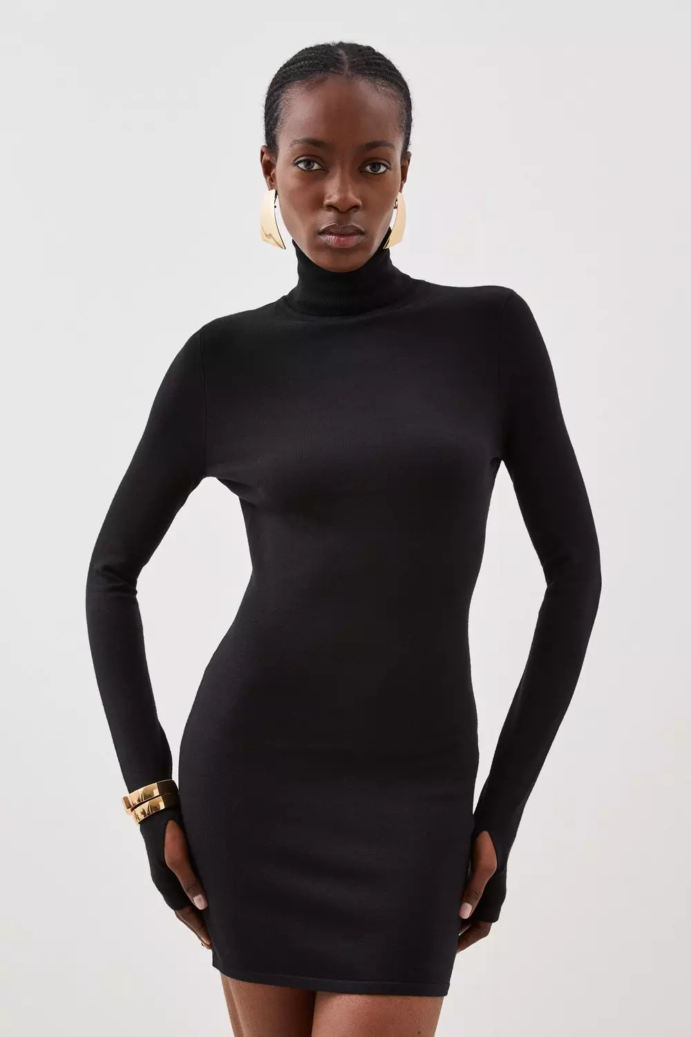 Karen millen knitted dress sale clearance, Viscose Blend Turtleneck Thumbhole Cuff Knit Mini Dress Karen clearance