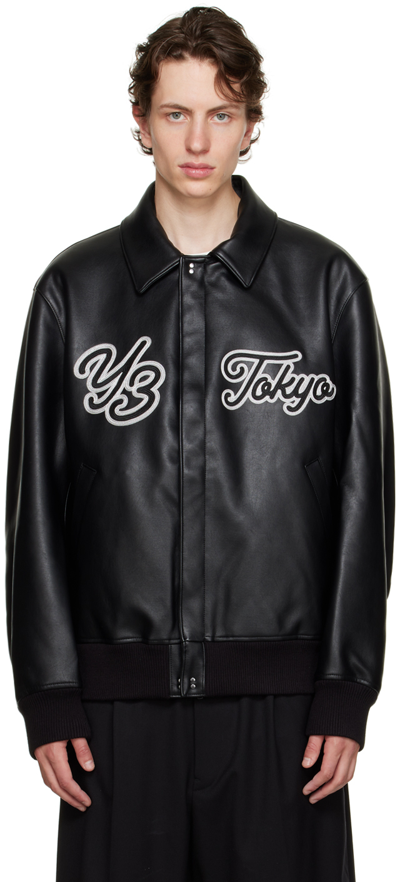 Y 3 Black Collared Faux leather Bomber Jacket In Schwarz ModeSens