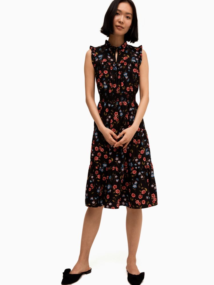 Kate Spade NY Black Wild Ones Meadow Sleeveless Smock Waist