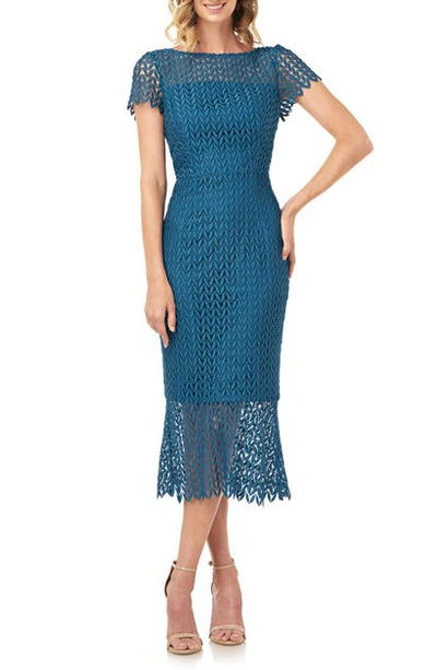 Kay Unger Fishnet Lace Sheath Dress In Teal ModeSens