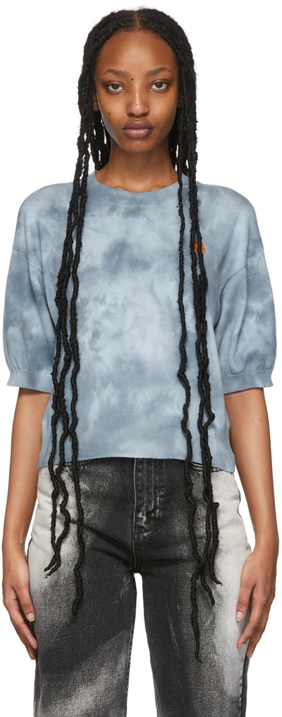 Blue Tie dye Tiger Crest Short Sleeve Sweater In 62 Glacier