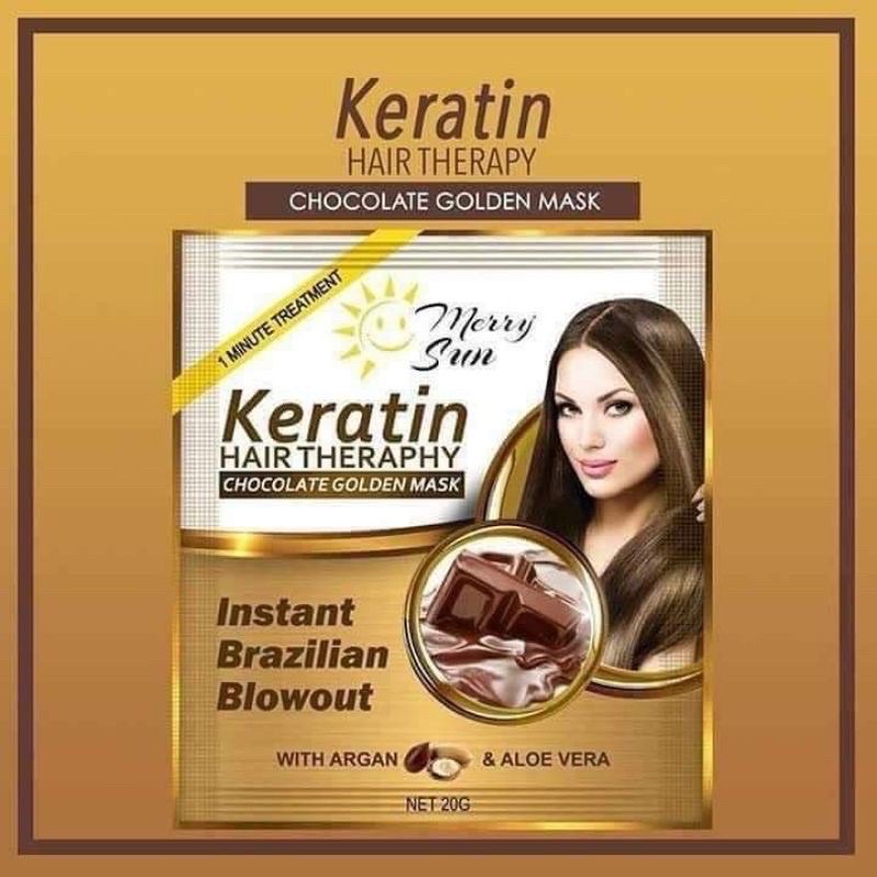 merry sun keratin hair therapy chocolate golden mask 20g Shopee