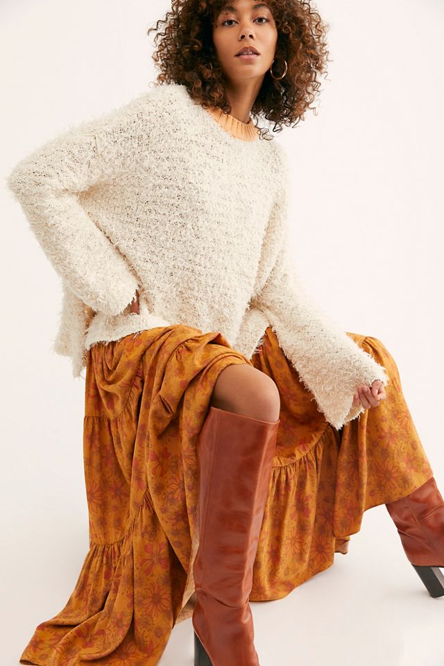 NEW FREE PEOPLE Sz S KERRIGAN PRINTED TIERED MAXI SKIRT HONEY