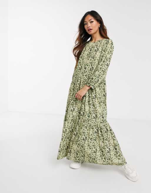 ASOS DESIGN tiered maxi dress in khaki leopard print