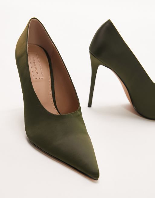 Khaki pumps clearance, Topshop Violet high vamp heeled court shoes in khaki satin clearance