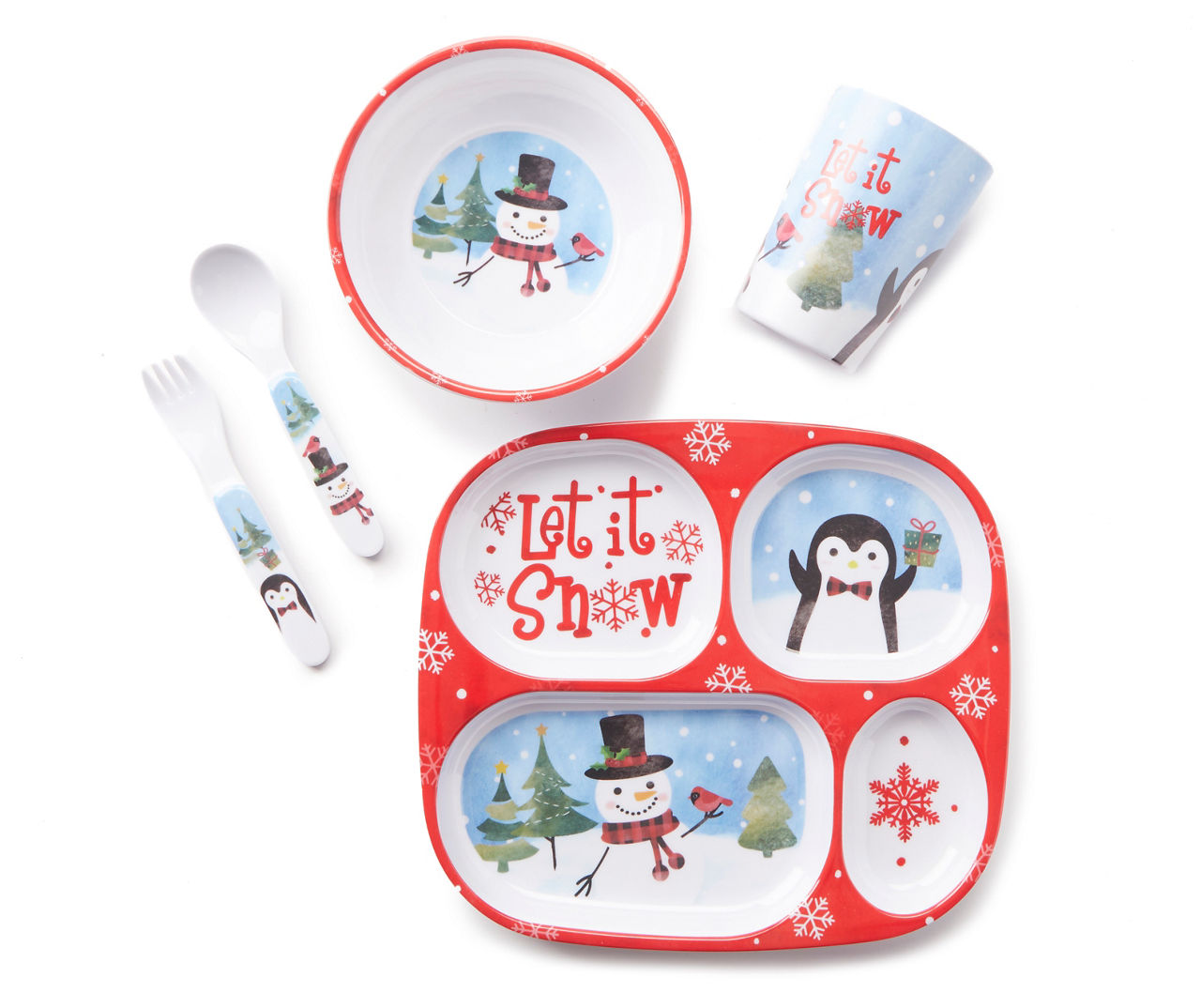 Winter Wonder Lane Kids Holiday 5 Piece Melamine Dinnerware Set