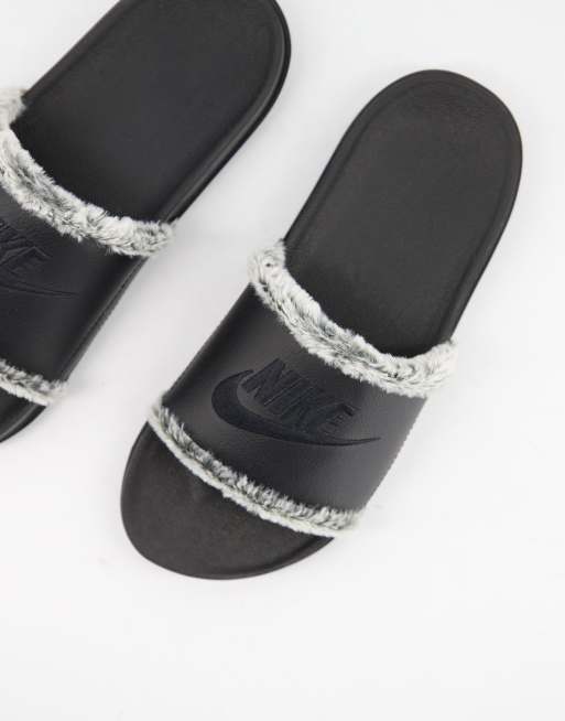 Klapki nike z futerkiem clearance, Kup online Nike Klapki z nadrukiem z logo czarny clearance