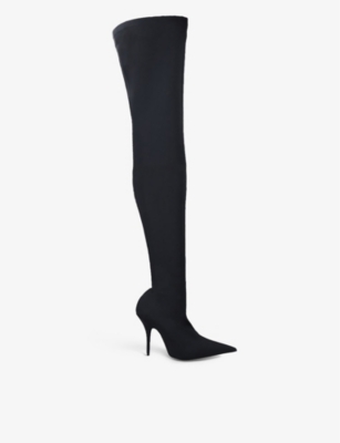 BALENCIAGA Knife thigh high stretch knit heeled boots