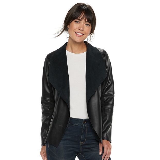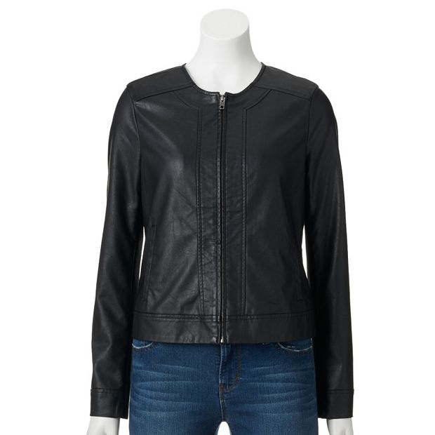 Kohls apt 9 leather jacket clearance, Women s Apt. 9 Faux Leather Flyaway Jacket clearance