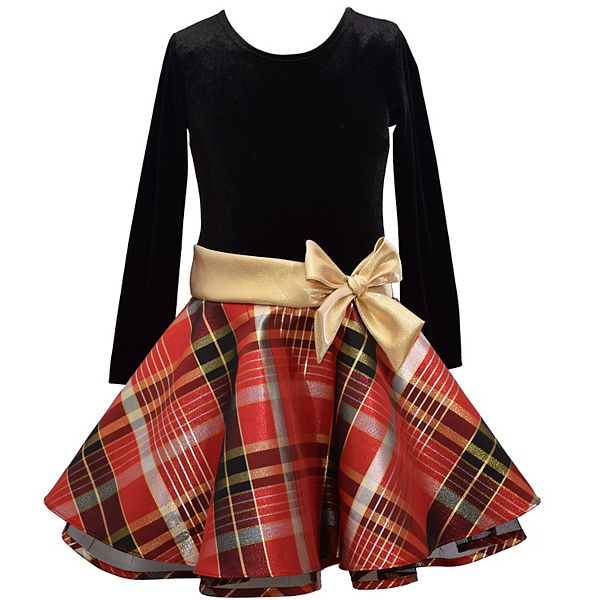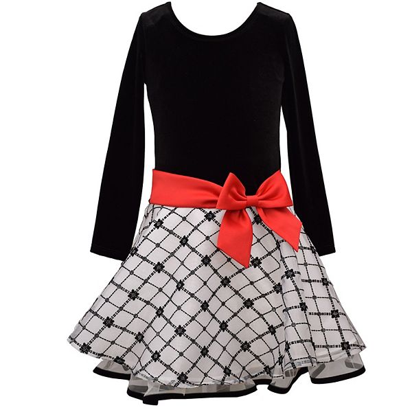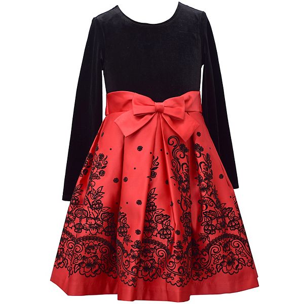 Girls 4 6x Bonnie Jean Long Sleeve Velvet Taffeta Dress