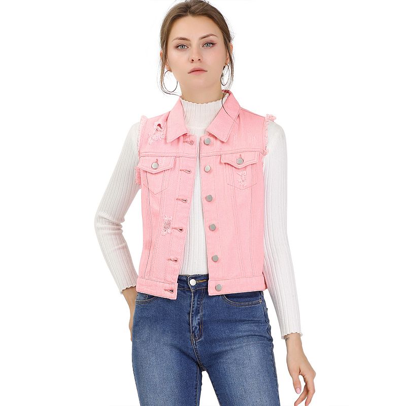 Women s Plus Size Fashion Sleeveless Jacket Drawstring Zip Denim Vest