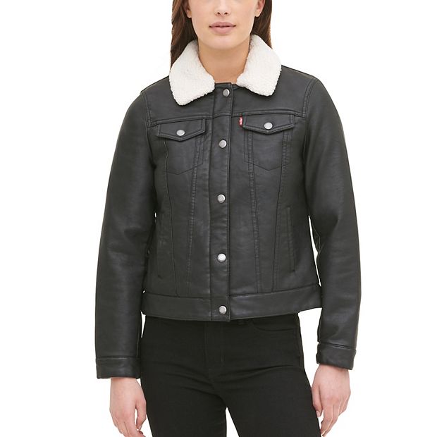 Women s Levi s Classic Faux Leather Trucker Jacket with Sherpa Lining