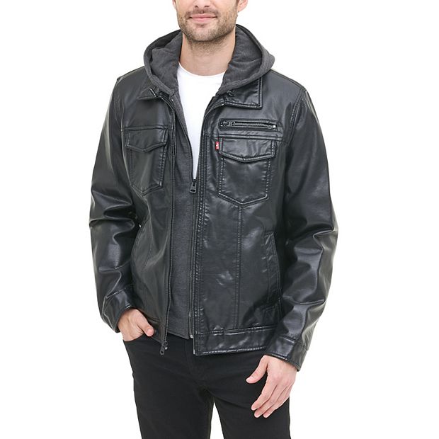 Kohls mens leather coats clearance, Men s Levi s Vintage Faux Leather Sherpa Lined Hooded Trucker Jacket clearance