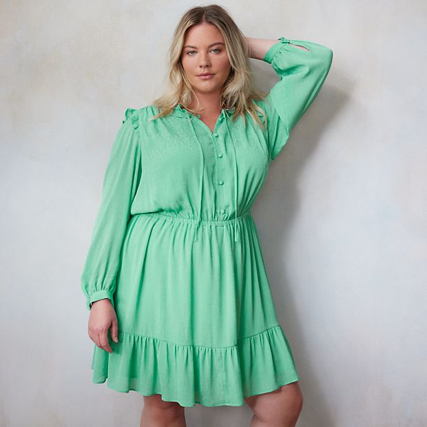 Plus Size LC Lauren Conrad Ruffle Neck Button Front Dress