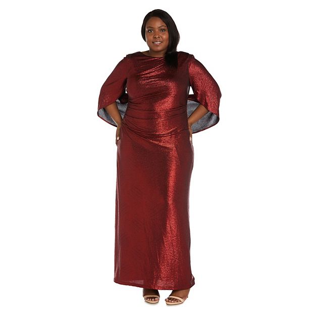 Plus Size R M Richards Shimmery Back Cowl High Neck Maxi Evening
