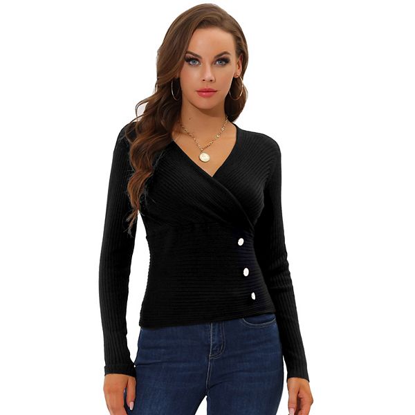 Women s V Neck Pullover Slim Fit Top Long Sleeve Stretch Wrap Sweaters