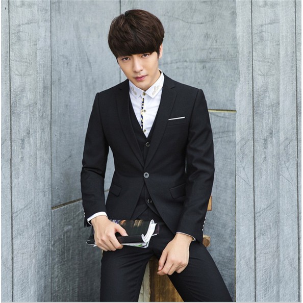 Korean Style Casual Slim Fit Men Wedding Suit Tuxedo Working