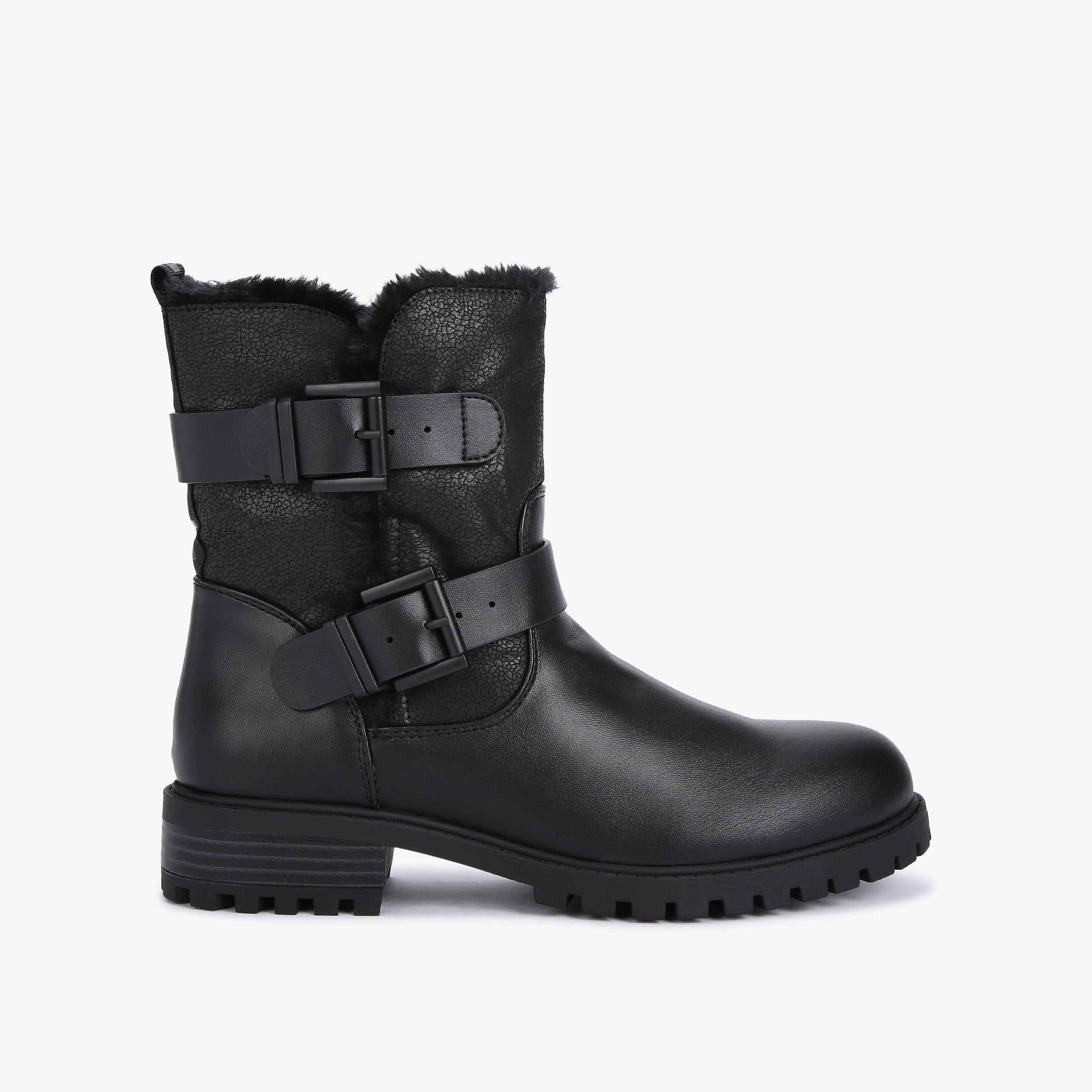 SNUG3 Vegan Faux Fur Buckled Biker Boots by KG KURT GEIGER