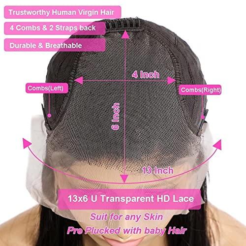 Straight Lace Front Wigs Human Hair Pre Plucked Glueless 13x4 HD Transparent Lace Frontal Wigs for Black Women 26 Inch Brazilian Virgin Human Hair