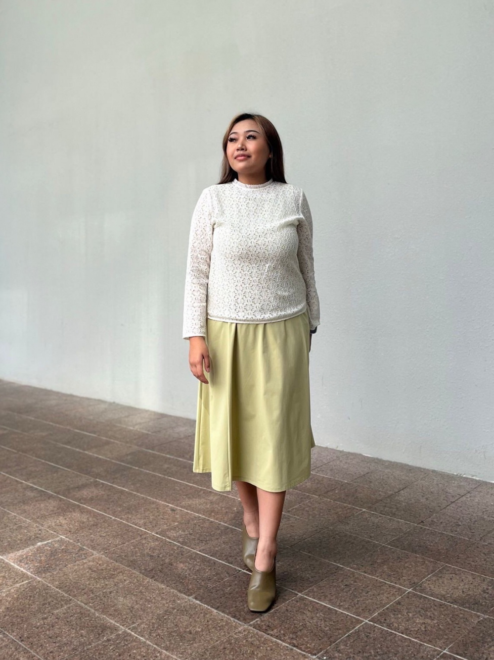 Lace skirt uniqlo clearance, Check styling ideas for Lace Long Sleeve Blouse Denim Long Skirt clearance