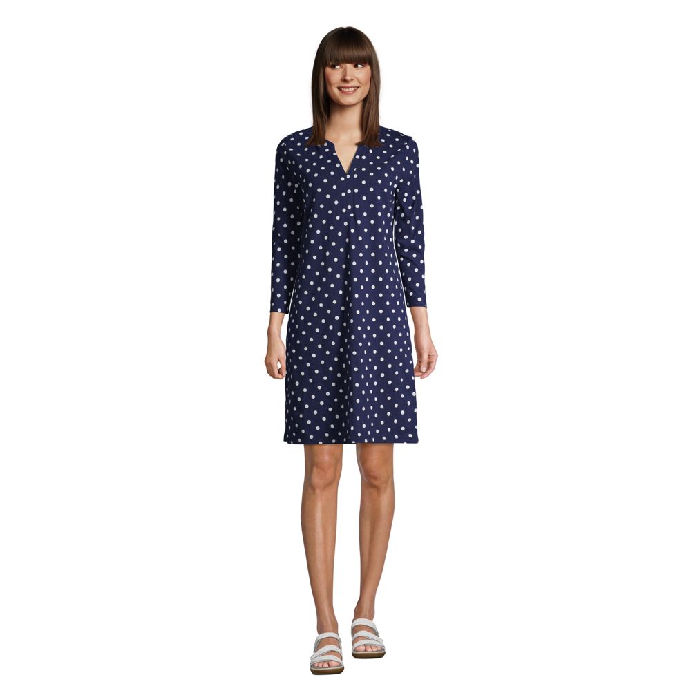 Lands end polka dot dress clearance, Lands End Brown Herringbone 3 4 Sleeve Textured Skater Dress clearance