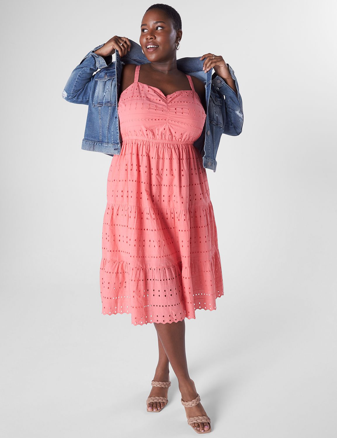 Lane bryant pink dress clearance, Sweetheart Neck Tiered Eyelet Midi Dress LaneBryant clearance