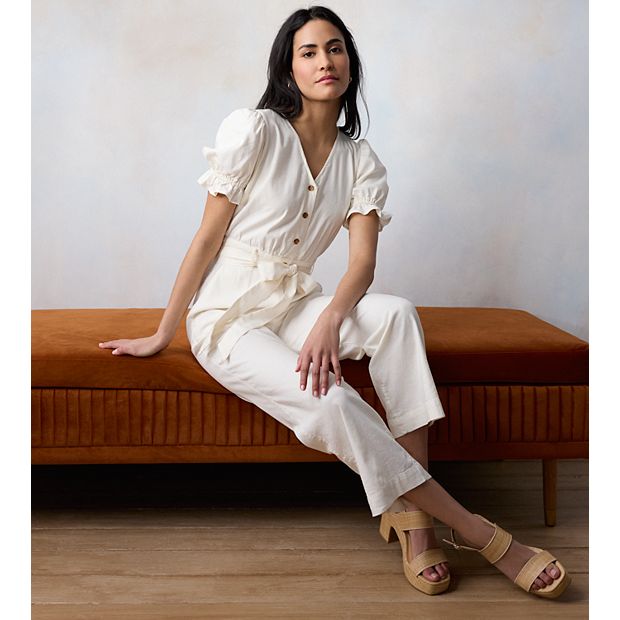 Lauren conrad jumpsuit clearance, Women s LC Lauren Conrad Puff Sleeve Button Down Tie Waist V Neck clearance