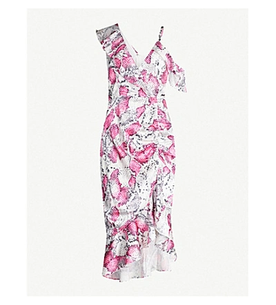 Lavish alice ruffle dress clearance, Lavish Alice Ruffled Snake print Stretch satin Midi Dress In Pink clearance