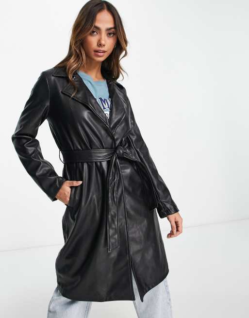 Leather look trench coat clearance, Reclaimed vintage Longline Leather Look Trench Coat With clearance