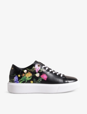 Leather ted baker womens trainers clearance, Ted Baker Womens Black Lorayy Floral print Platform Leather Low clearance